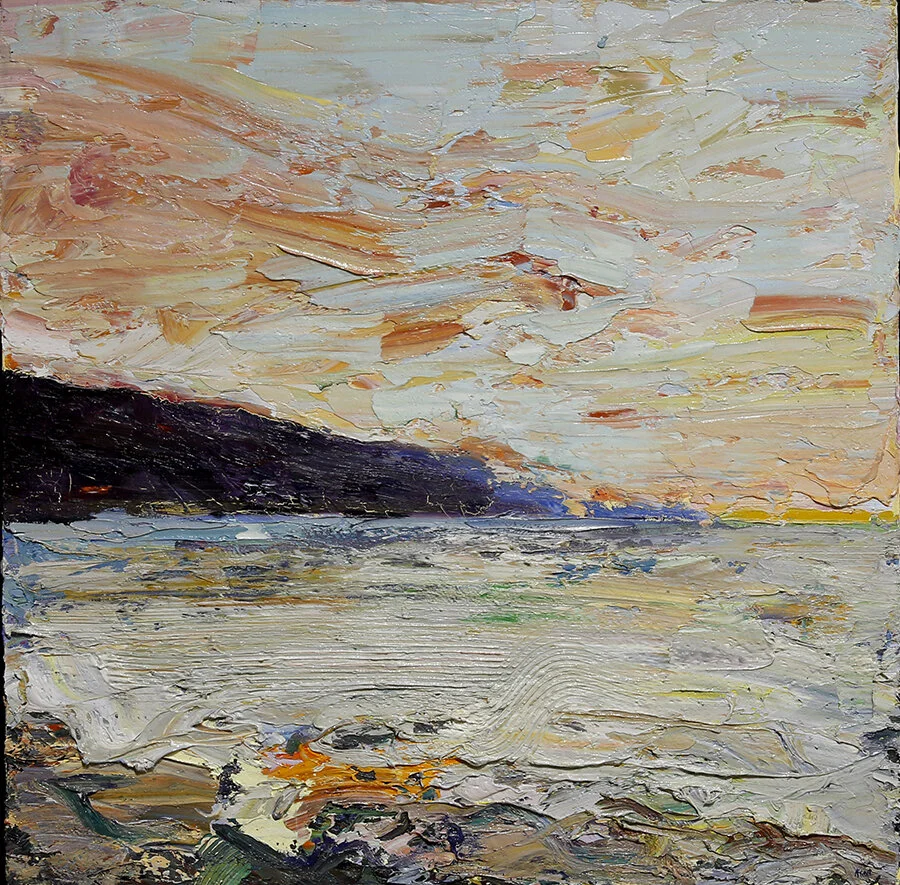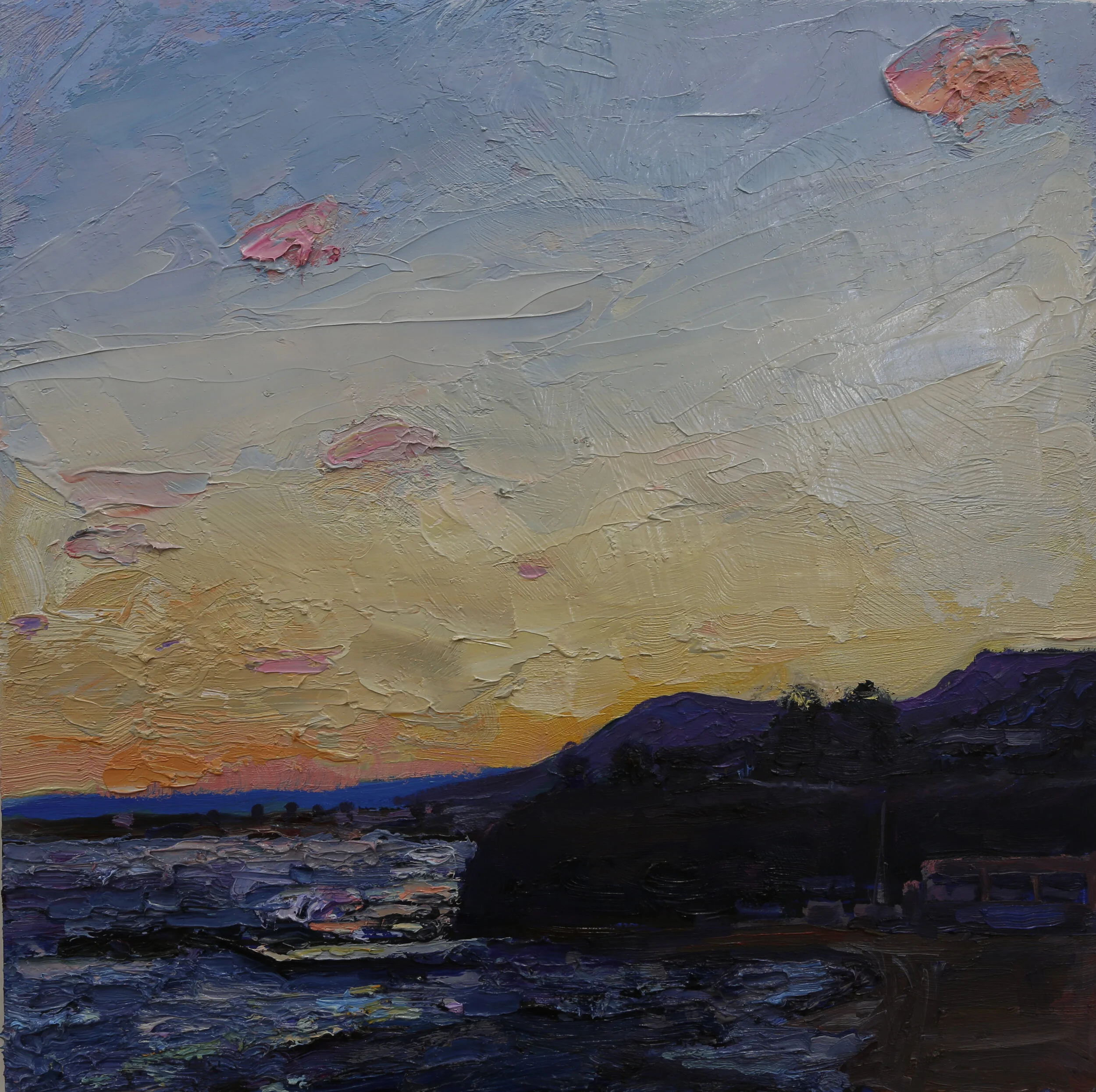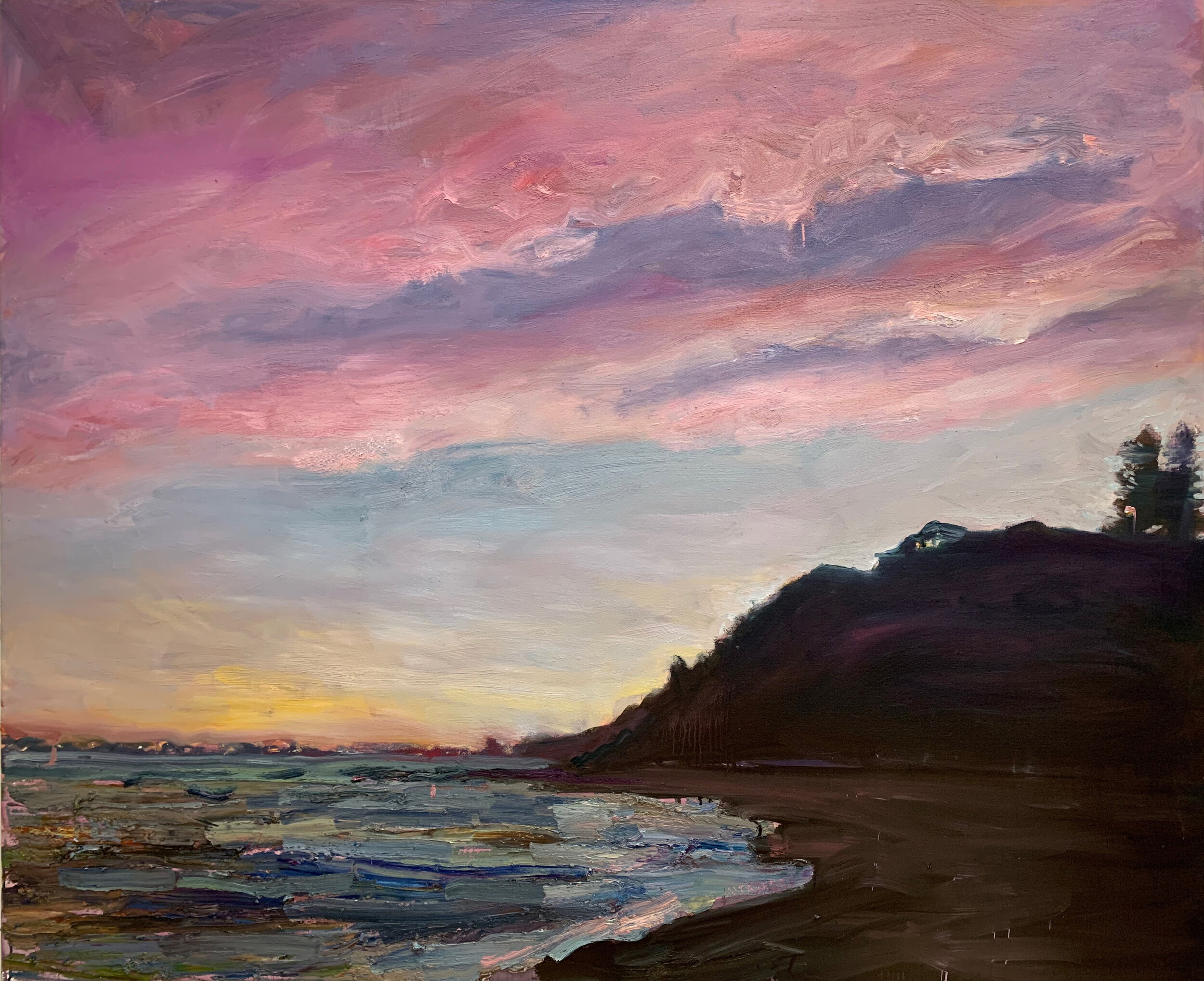 The time of day for the light of many of the works in this show are from dawn or dusk. Ashley is in pursuit of the heightened light of a time of day that is neither day nor night but a convergence of sorts, not dissimilar to the heightened environment seen in the convergence between land and sea.