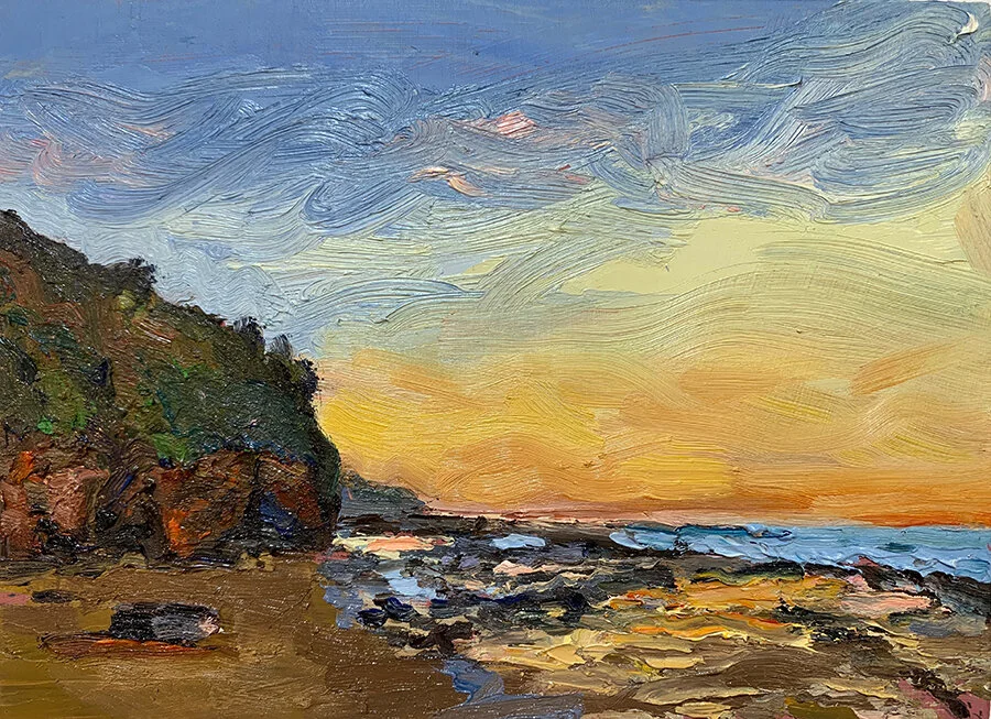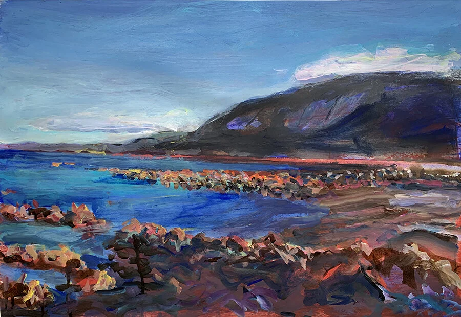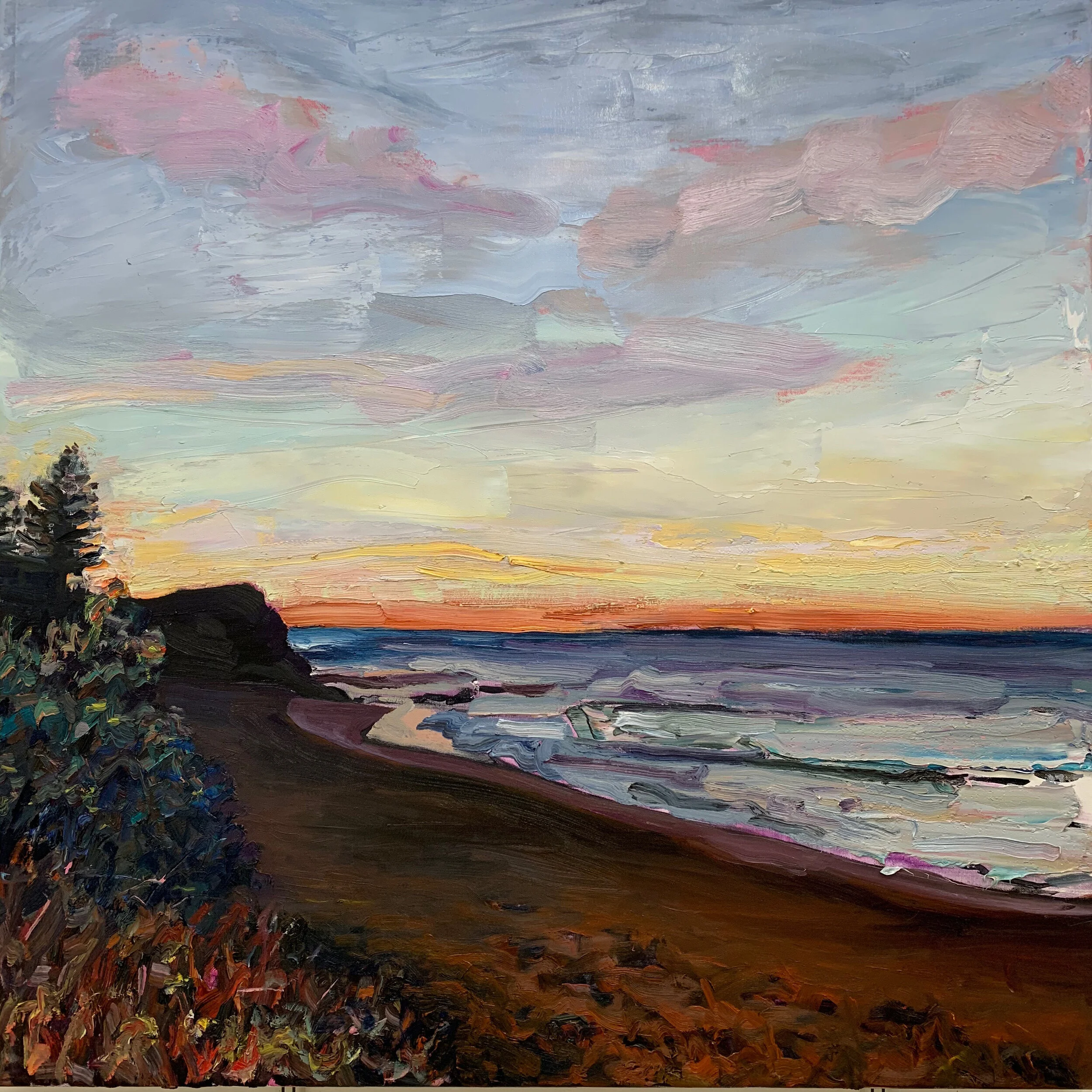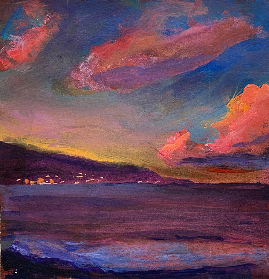 The time of day for the light of many of the works in this show are from dawn or dusk. Ashley is in pursuit of the heightened light of a time of day that is neither day nor night but a convergence of sorts, not dissimilar to the heightened environment seen in the convergence between land and sea.
