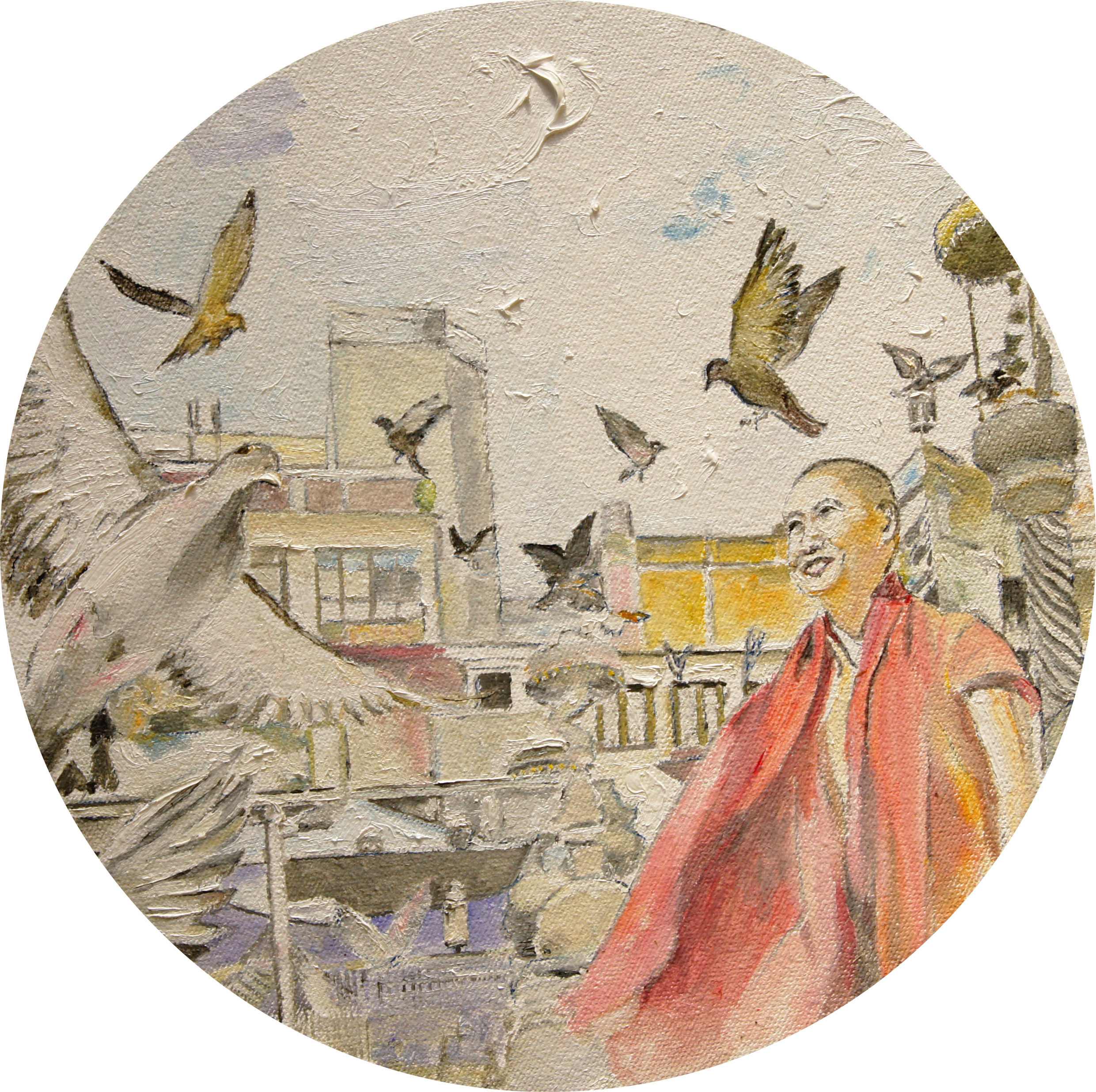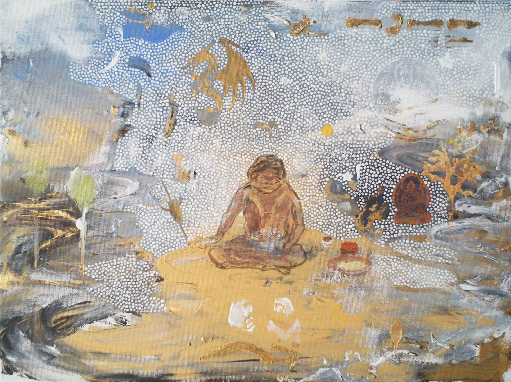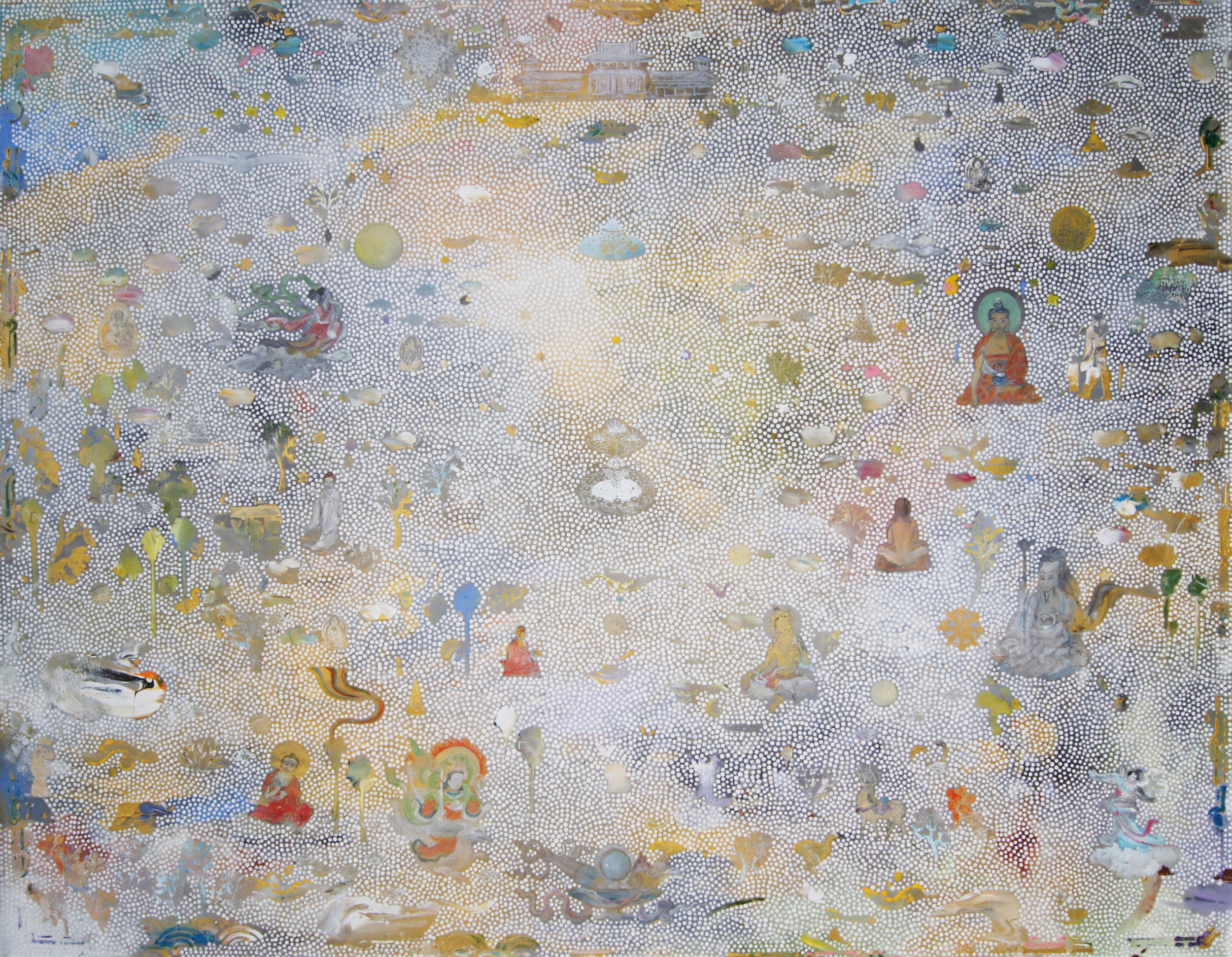 “Having painted imagery that relates to or comes from religious and spiritual traditions for some time now”, the artist says, “I've come to think that painting itself, the act of putting together marks, signs and symbols in a kind of visual note taking, opens a door to a non-physical world or at least to a world that's far from the mundane one that we usually inhabit”.