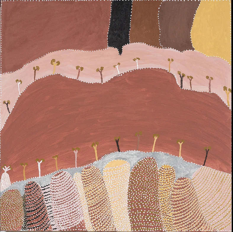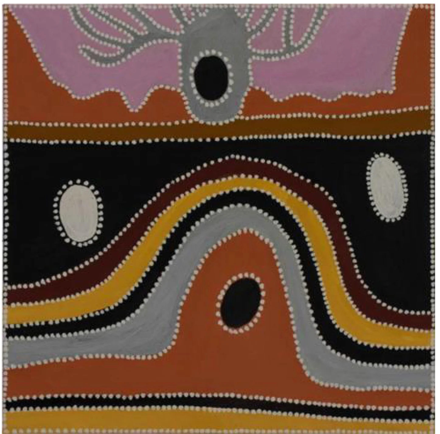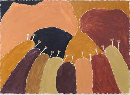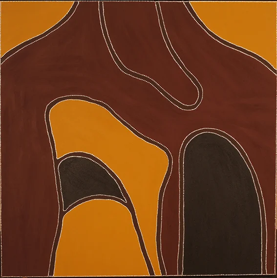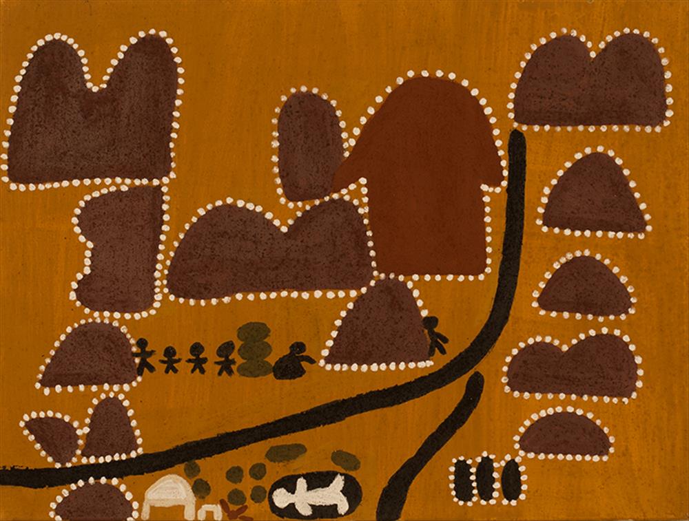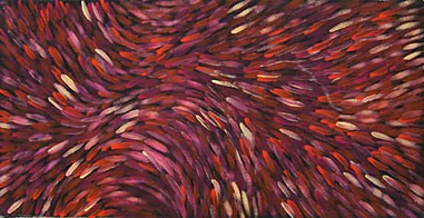 From the remote regions of Western Australia and the Northern Territory comes the art of four of Australia’s leading indigenous artists. Caring for Country presents paintings by Queenie McKenzie, Freddie Timms, Gloria Petyarre and Dr. George Tjapaltjarri. The four share a love of their traditional lands and a respect for the way their country has nurtured them. Their art shows how they draw spiritual and physical sustenance from country and turn to it for spiritual and physical healing.