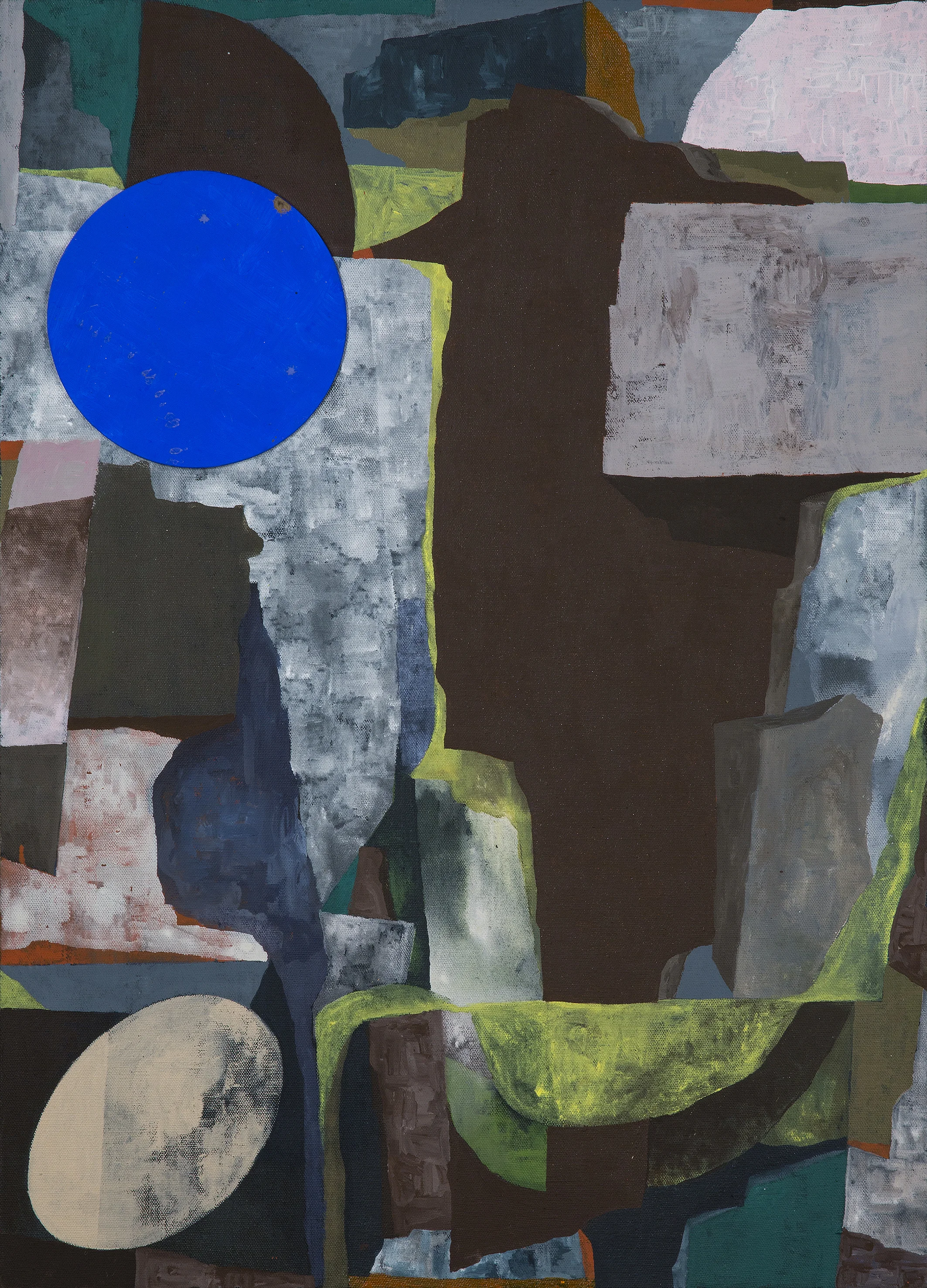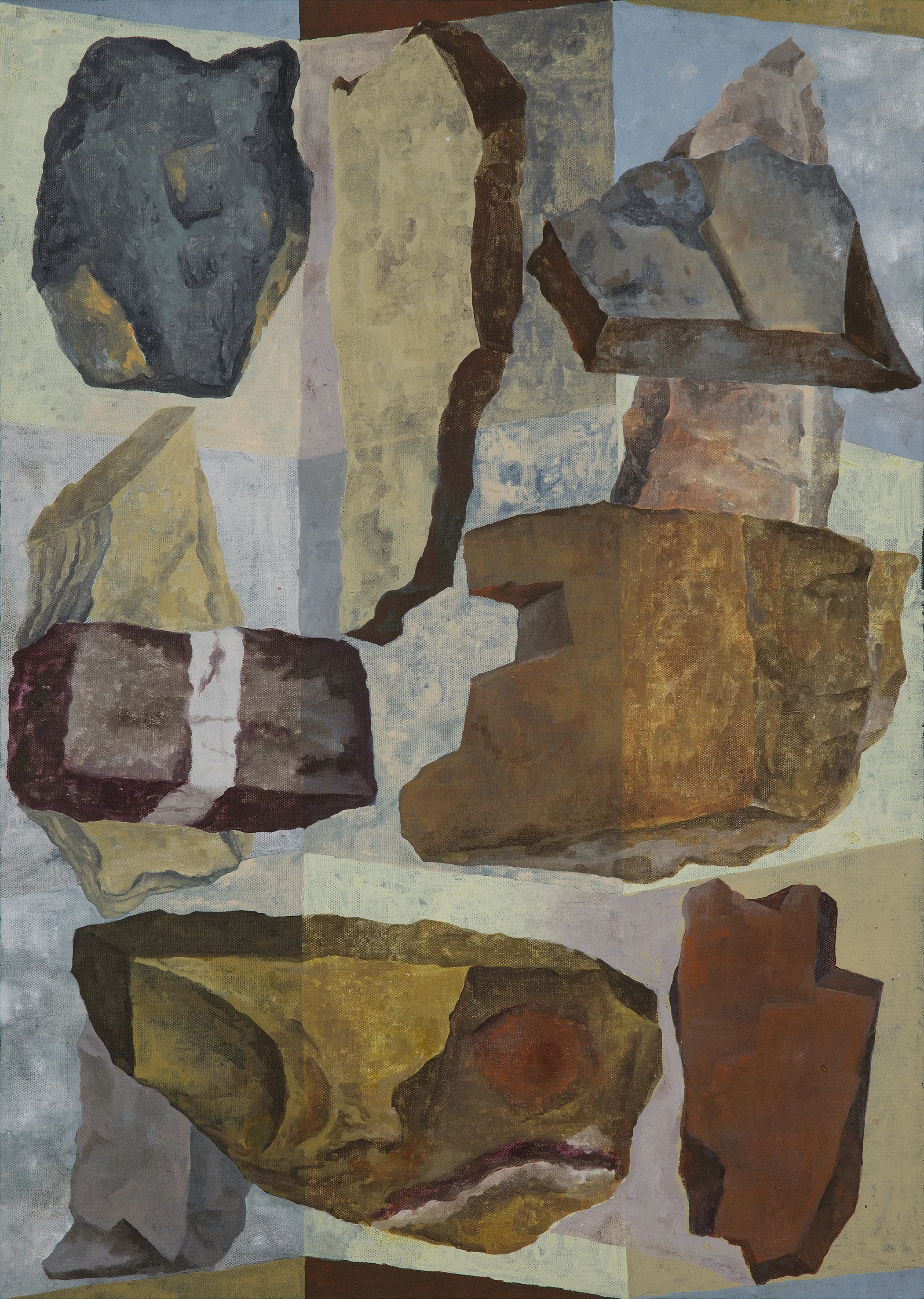 Recently I have found myself enjoying the experience of considering paint as a kind of mineral matter: of colour as a gritty and particular substance. And I enjoy the way rocks form and cleave with planar geometry and yet erode and crumble in ways more organic. Each is irregular and unique and is shaped by a specific series of events in the world.