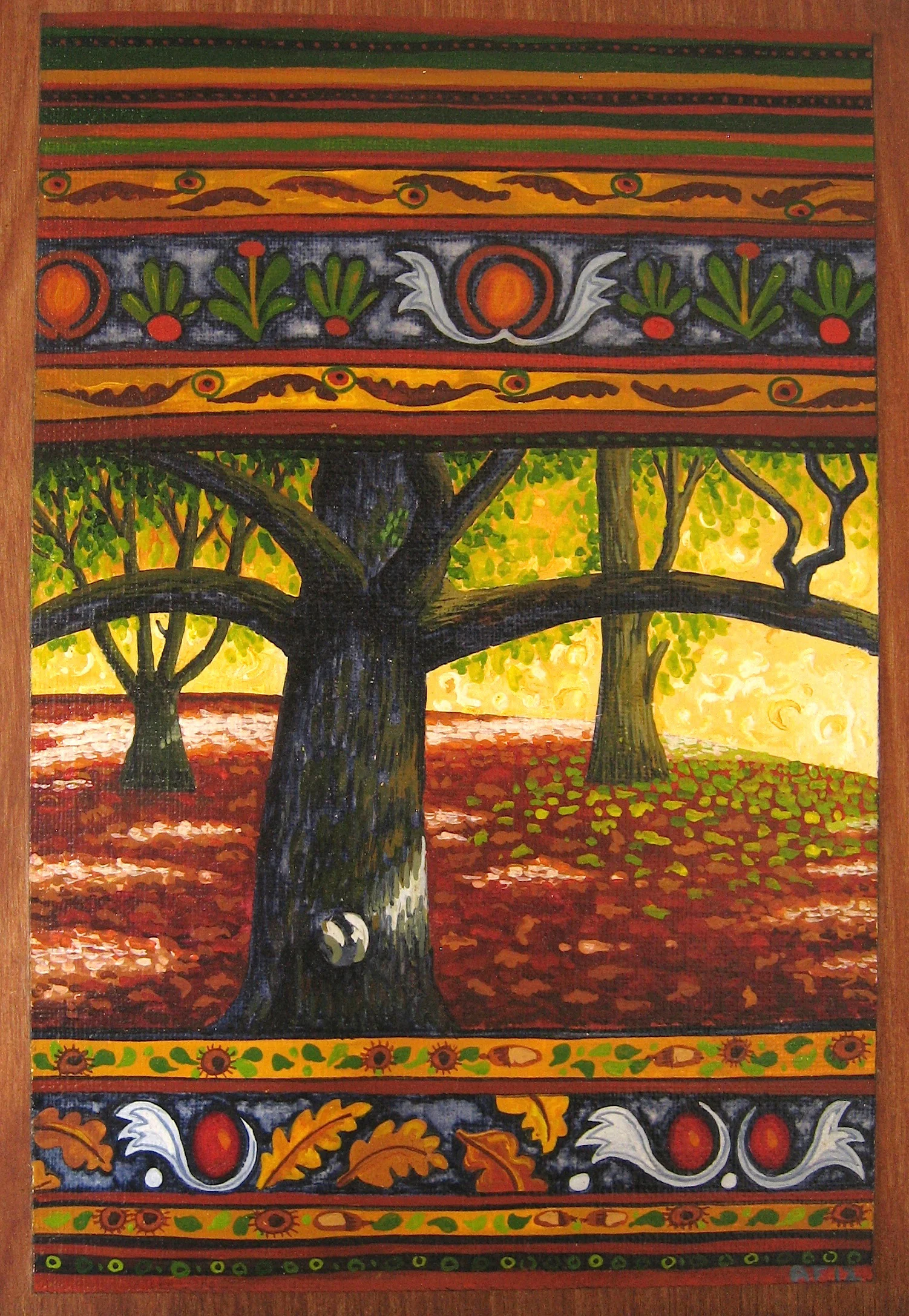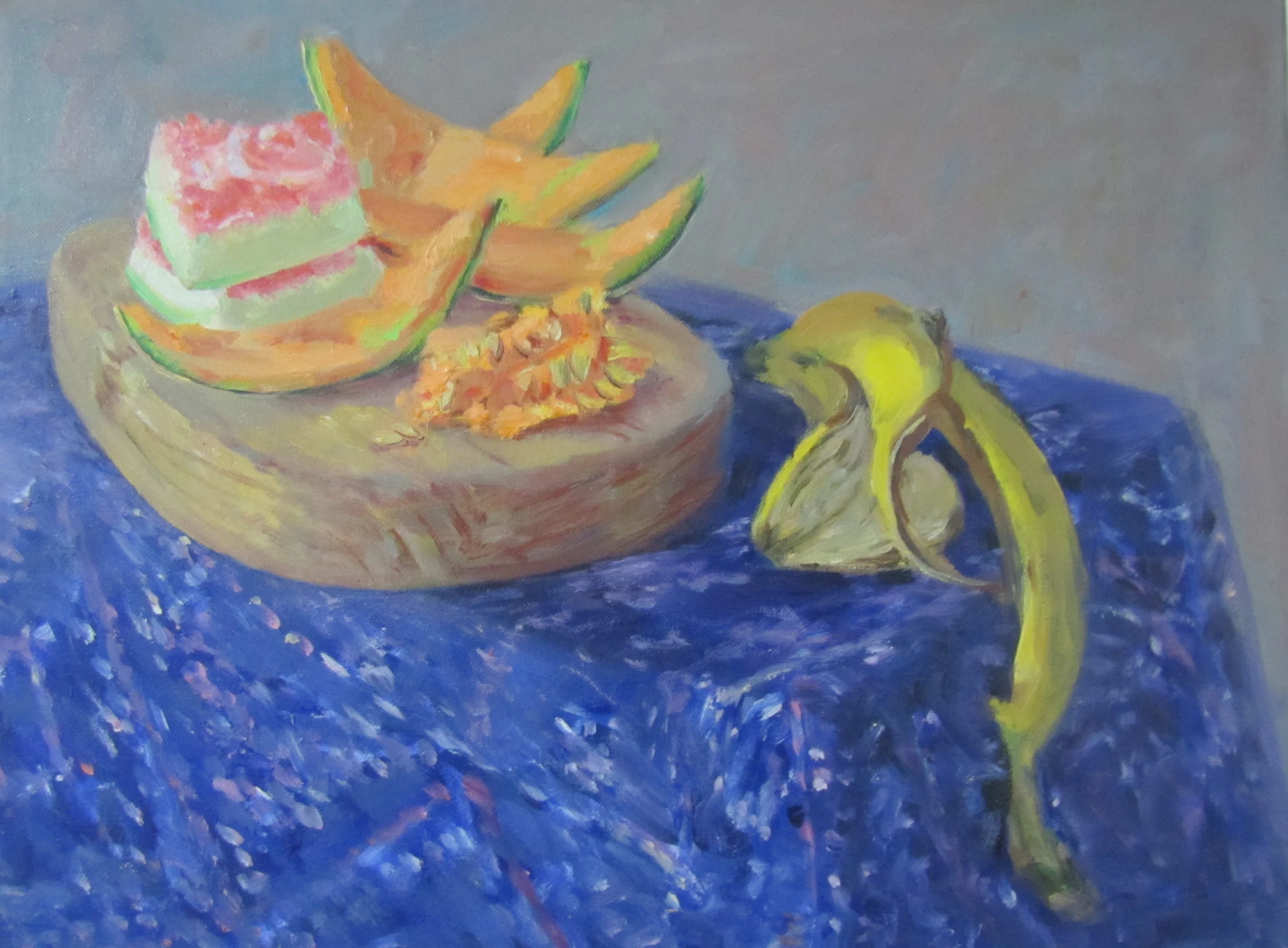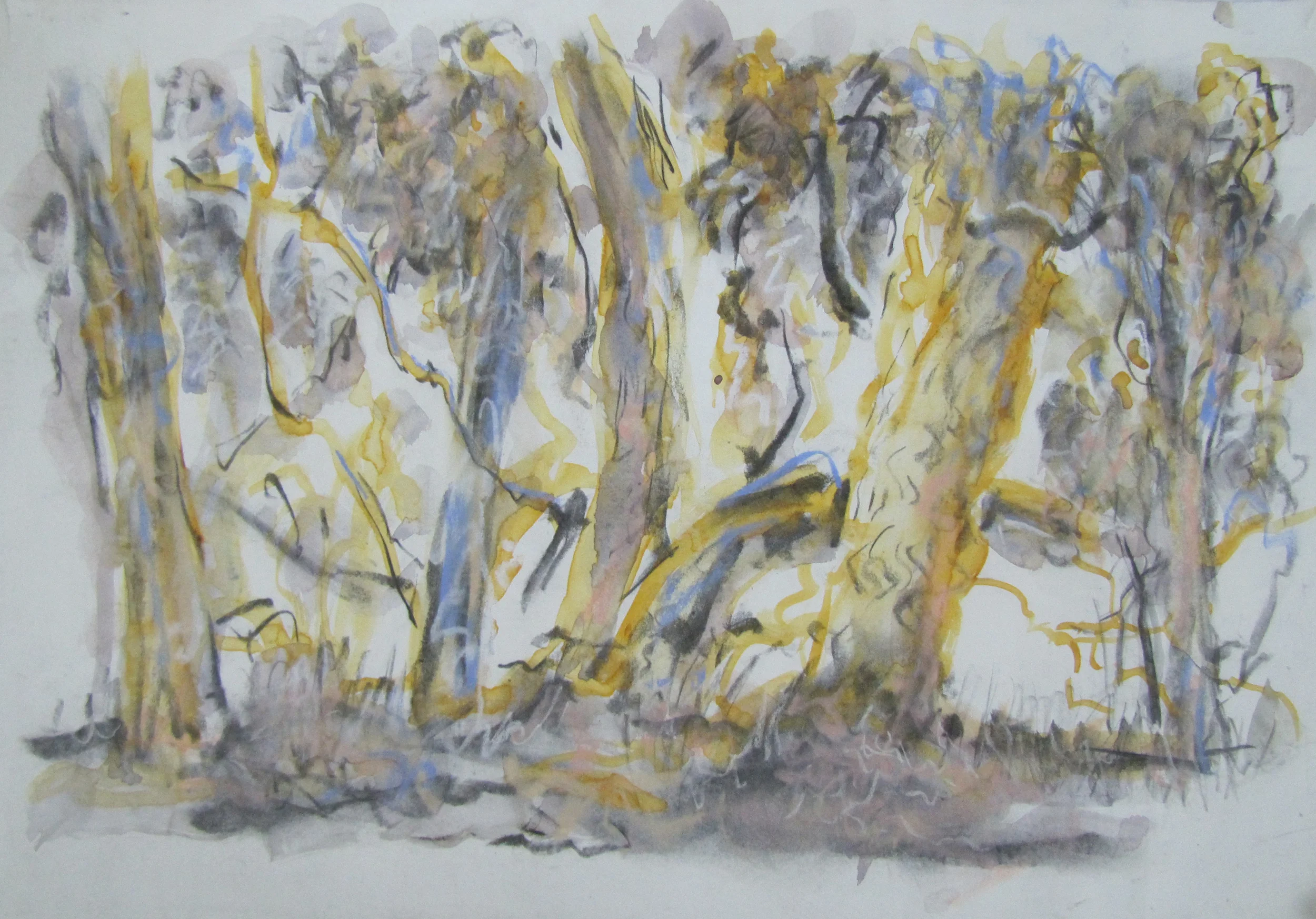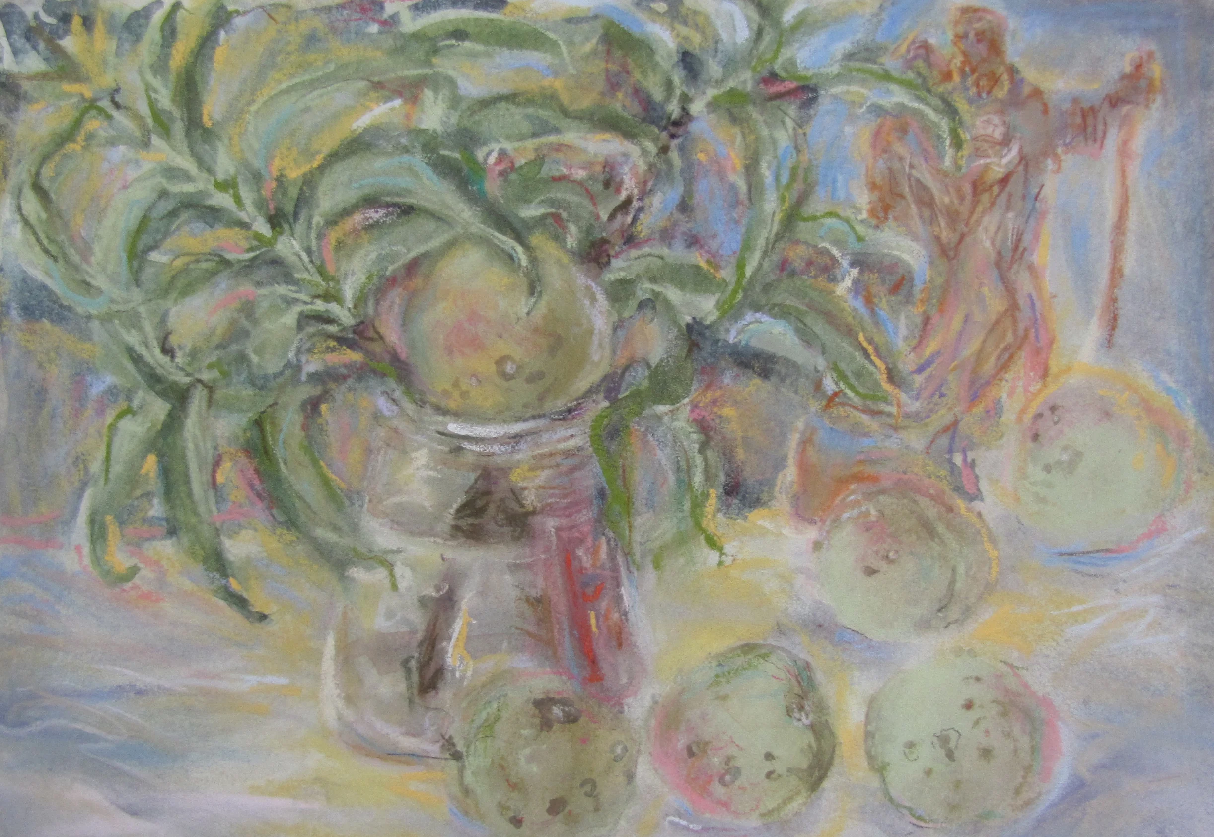 These paintings grew out of a number of everyday visual pleasures: a collection of small rocks picked up the bush, plants my backyard garden, the landforms of the Blue Mountains, mornings spent amongst the eucalypts in the Canberra Botanic Gardens, and the pleasures of painting itself, of Bellini, El Greco, Gauguin, of Romanesque frescoes and Indian miniatures. The process of making them was a much more instinctive and improvisatory thing than I have experienced before, listening to Miles Davis, John Coltrane and Charles Mingus. Maybe as a result these paintings look a bit retro- a bit 1950s.