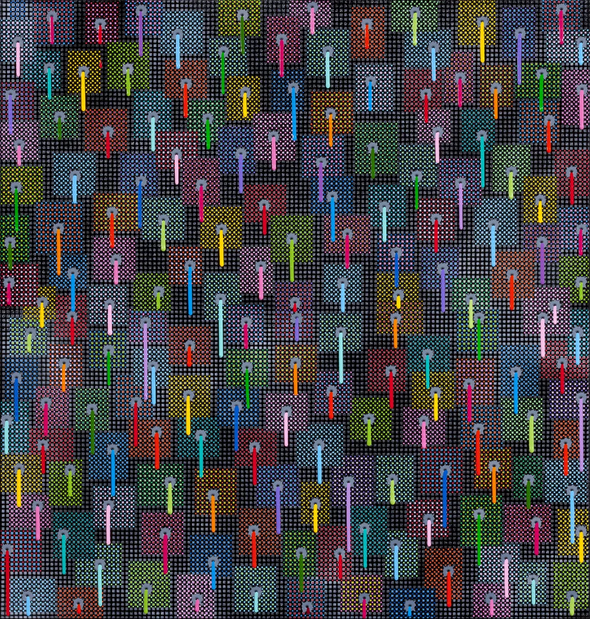 Constructed from a diversity of materials and mediums, the work in BUILD at Nancy Sever Gallery included paint on canvas, aluminium and plexiglass, as well as object making, video, drawing, digital painting and photography, reflecting this engagement with painting as an expanded, hybrid field. While many of the materials used in BUILD are readymade products of industry, inspection also reveals a celebration of the hand and its imperfections, the painterly, and process in all its guises. Presenting artworks from 2007 until the present, BUILD also tests the limits of difference across the artist’s practice, ultimately reflecting upon the act of ‘building’ a body of work.