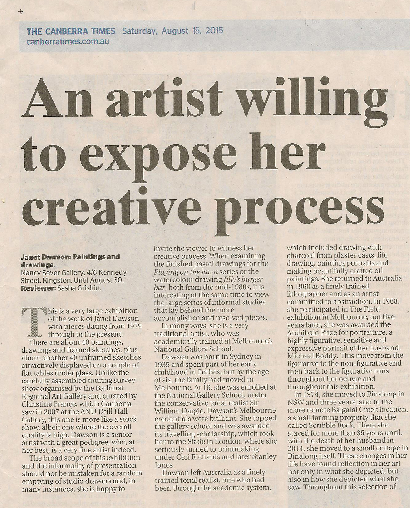 The Canberra Times, Friday 24 October 2014