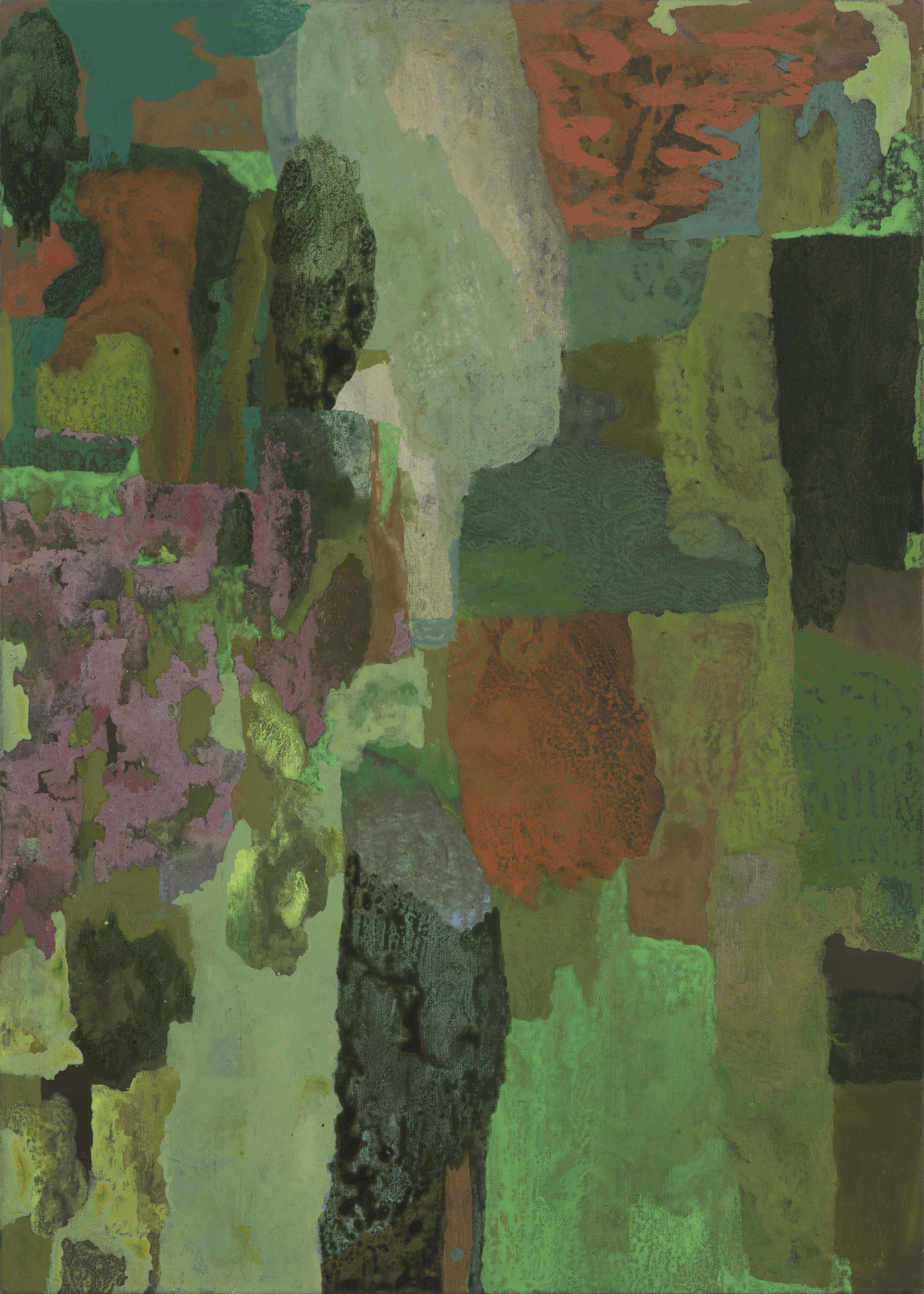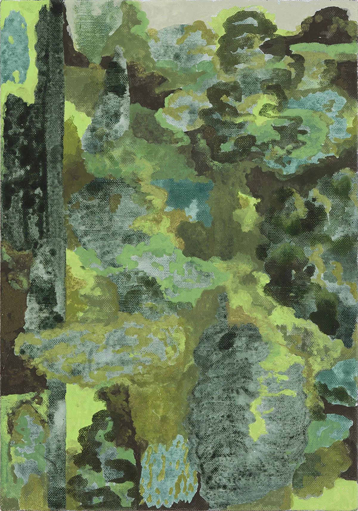 These paintings grew out of a number of everyday visual pleasures: a collection of small rocks picked up the bush, plants my backyard garden, the landforms of the Blue Mountains, mornings spent amongst the eucalypts in the Canberra Botanic Gardens, and the pleasures of painting itself, of Bellini, El Greco, Gauguin, of Romanesque frescoes and Indian miniatures. The process of making them was a much more instinctive and improvisatory thing than I have experienced before, listening to Miles Davis, John Coltrane and Charles Mingus. Maybe as a result these paintings look a bit retro- a bit 1950s.