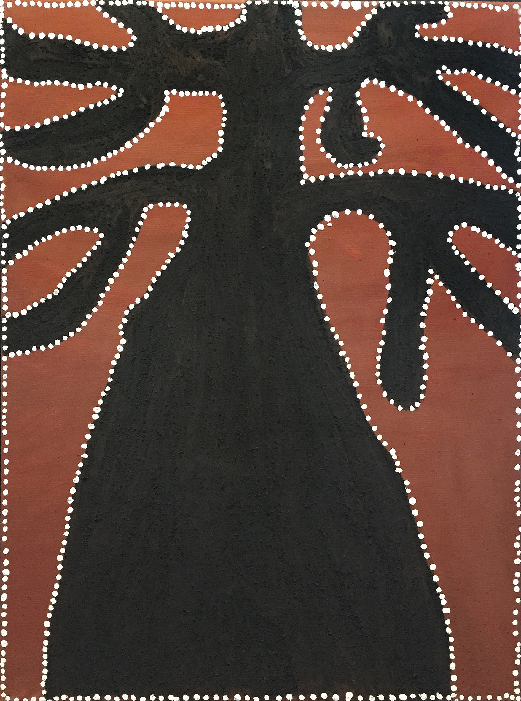 The paintings in this exhibition are simultaneously geographical, historical and biographical. Country is mapped with ochre to illustrate the present and the past: the artists’ personal lives and those of their ancestors. They present a rich tapestry of narratives that reveal the contemporaneity of the Ngarranggarni (Dreaming) amidst the currents of colonisation.